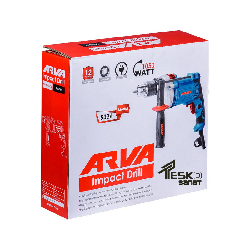 دریل چکشی آروا 1050 وات 13 میلیمتری سه نظام آچاری مدل 5336