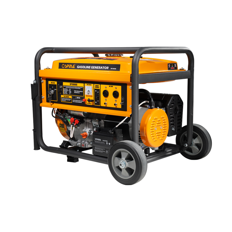 این موتوربرق دارای چرخ و دسته می باشد که جابه جایی را برای کاربر آسان می کند. موتور برق بنزینی اسپینا مدل SP19000E دارای سیستم سنسور سطح روغن ، سیم پیچی 100% مس، و کنترل نوسان برق AVR می باشد سیستم راه اندازی این موتور برق به صورت استارتی و هندلی می باشد.