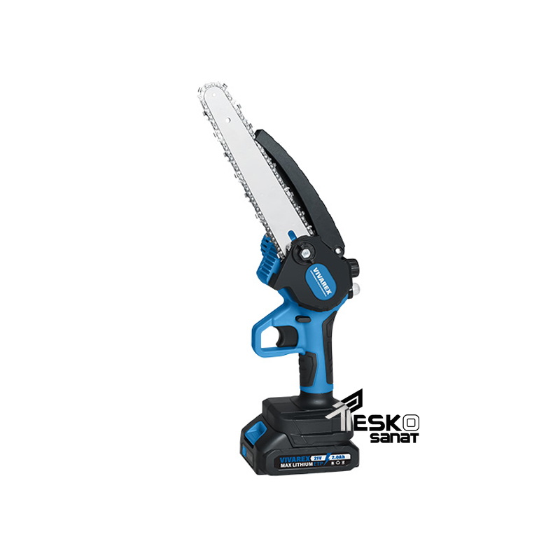 اره زنجیری شارژی 21 ولت 20 سانتی متر ویوارکس مدل VR2108-CS همراه با زنجیر یدک به بازار ابزارآلات ارائه می شود . اره زنجیری شارژی 21 ولت 20 سانتی متر ویوارکس دارای سیستم روغن کاری اتومات است که خطر خرابی موتور و تجهیزات را کاهش داده و در ادامه عمر استفاده از محصول را افزایش می دهد .این اره زنجیری شارژی 21 ولت 20 سانتی متر مجهز به گارد و کلید محافظ نیز است . اره زنجیری شارژی ویوارکس دارای 2 عدد باطری 21 ولت 2 آمپر می باشد . همراه با اره زنجیری شارژی ویوارکس پایه شارژ فست، زنجیر یدکی و کیف حمل BMC ارائه می شود . مکانیزم کارکرد این دستگاه به این صورت است که دندانه های اره به صورت یک زنجیر به یک محور دورانی متصل است که با گردش موتور زنجیر، اره کردن آغاز می شود. اره های زنجیری در دو دومدل برقی و بنزینی تولید می شوند. اره زنجیری برای انجام کارهایی مانند هرس کردن درختان میوه ، بریدن درختان خشک ، هرس و قطع و انداختن درختان جنگل یا مزرعه تولید چوب ، تهیه هیزم از درختان و سر شاخه ها کاربردهای فراوانی دارد. به عبارت کلی اره زنجیری یا موتوری وسیله ی مخصوص باغبانان و جنگلداران امروزی می باشد.