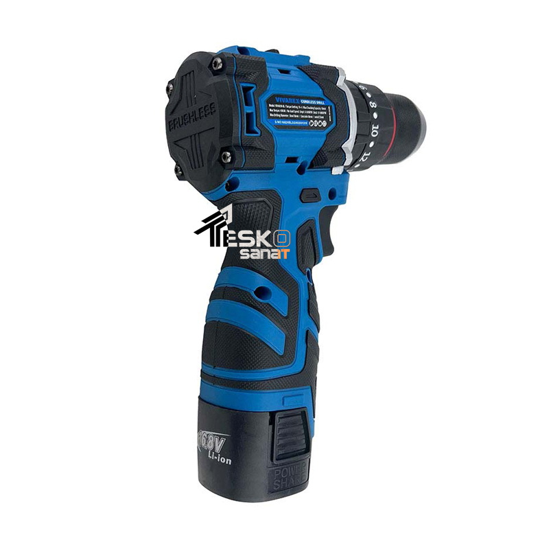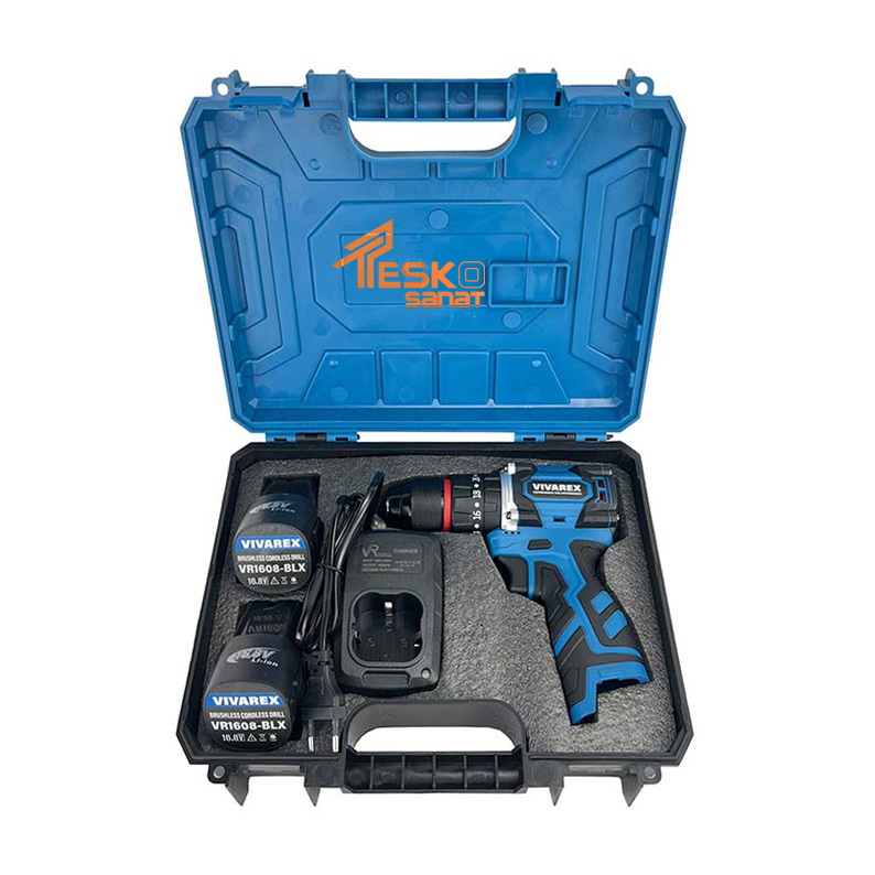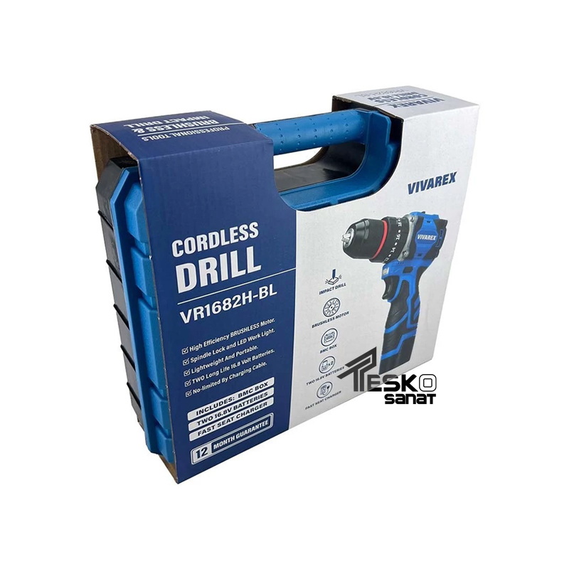 دریل شارژی ویوارکس 16.8 ولت چکشی براشلس دو باتری مدل VR1682H-BL