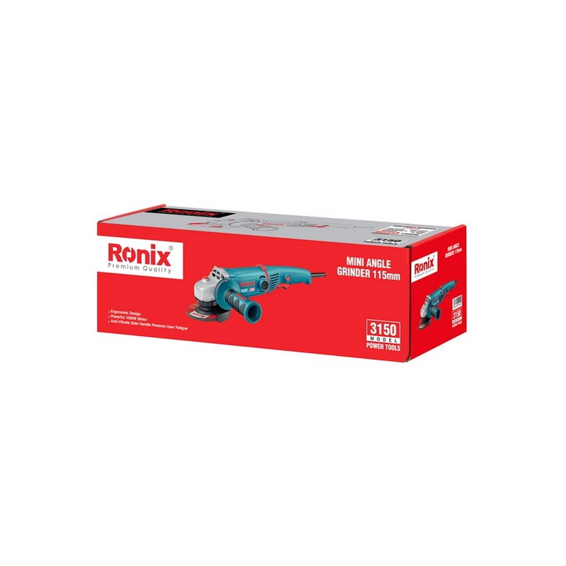 مینی فرز 125 میلیمتری رونیکس مدل 3150، با توان 1050 وات و سرعت 9000 دور بر دقیقه، ابزاری ایدهآل برای انجام انواع کارهای سنگین و دقیق در صنایع فلزی، ساختمانی و عمرانی است. از کاربردهای اصلی این مینیفرز میتوان به برش انواع فلزات، سنگها و مصالح ساختمانی، سابزنی سطوح، پاکسازی سطوح از زنگار و رنگ و انجام عملیات پرداختکاری اشاره کرد.دسته این مینیفرز ارگونومیک و به صورت دو حالته طراحی شده تا کاربر در استفاده طولانی مدت دچار خستگی نشود. بلبرینگهای ضد غبار به کار رفته در ساختار این مینیفرز، طول عمر قطعات را افزایش میدهد. همچنین مکانیزم قفل اسپیندل، باعث تعویض آسان و سریع صفحه برش میشود.در طراحی این مینی فرز، جهت تخلیه گرما و جلوگیری از آسیب به موتور دریچه تهویه هوا در نظر گرفته شده است. همچنین پوشش لاستیکی محافظ ضد حرارت نیز انتقال گرما به دست کاربر را کاهش میدهد. از دیگر مشخصات فنی این مینی فرز رونیکس مدل 3150 میتوان به سیمپیچهای موتور با پوشش اپوکسی با کیفیت بالا و سیستم جریان هوای مستقیم آن اشاره کرد.